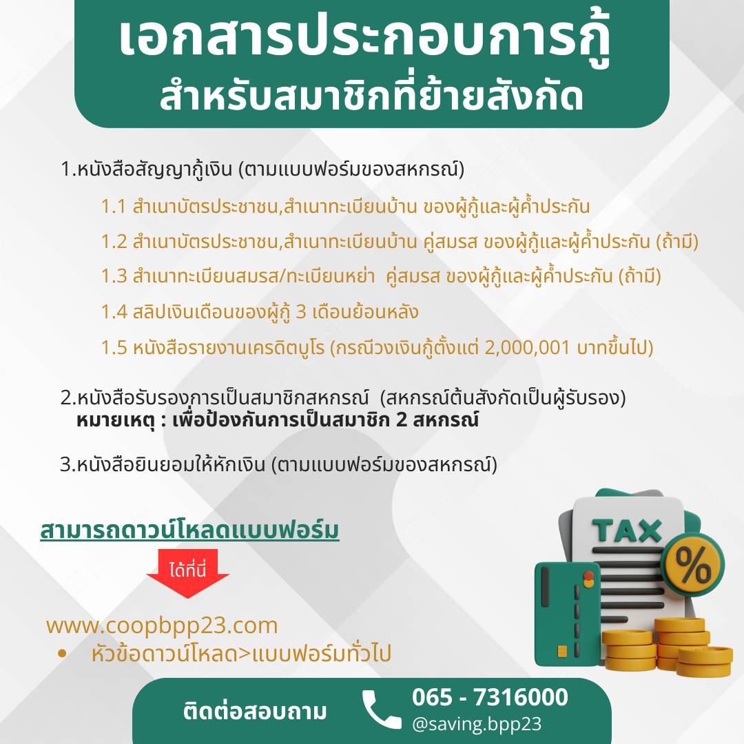 เอกสารประกอบการกู้สมาชิกที่ย้ายสังกัด